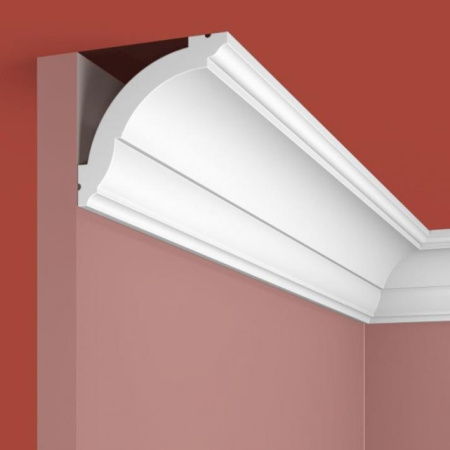 Карниз для скрытого освещения Cosca Decor изготовлен из ударопрочного экополимера – это композит с добавлением светостабилизатора. Материал изделия уже огрунтован в своей массе, благодаря чему его можно не окрашивать. Он сохранит белый цвет и не пожелтеет со временем. Красить также легко, с экономией на краске, так как грунтовка уже есть!