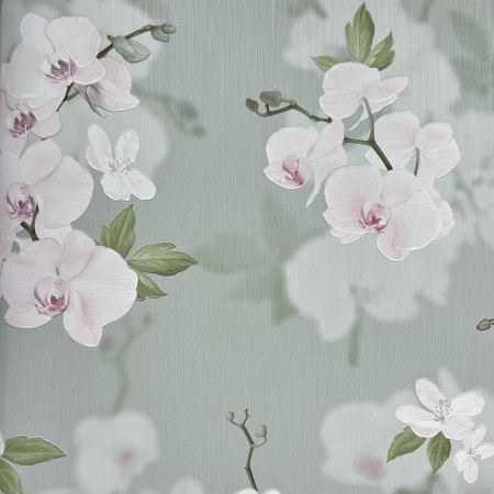 - Пятый сет выполнен в флористическом 3D-стиле и представляет собой шикарные ветви орхидей. За счет изображения высокой четкости, определенного нанесения текстуры на полотна обоев, на стене создается объемный эффект.